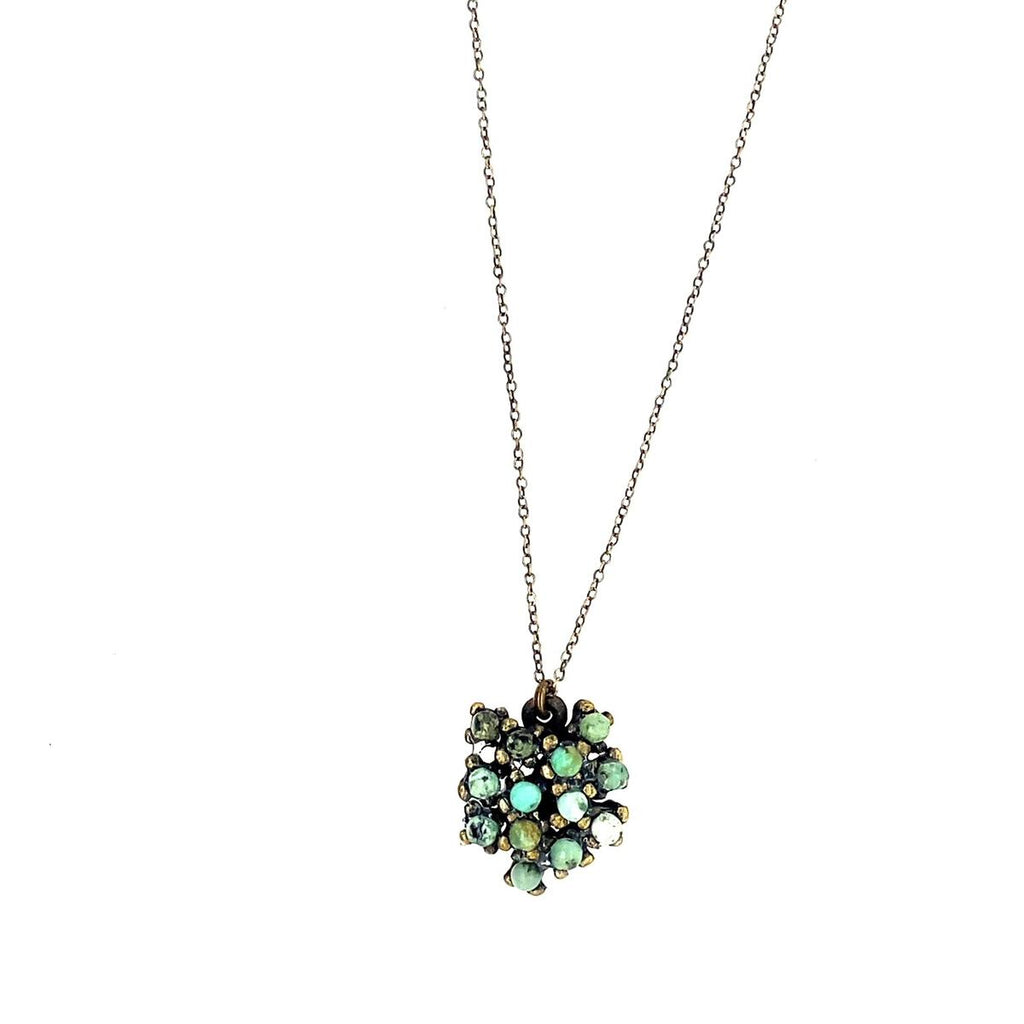 Rebel African Turquoise semi precious stone bead cluster pendant necklace. Antique brass chain. Style #2082