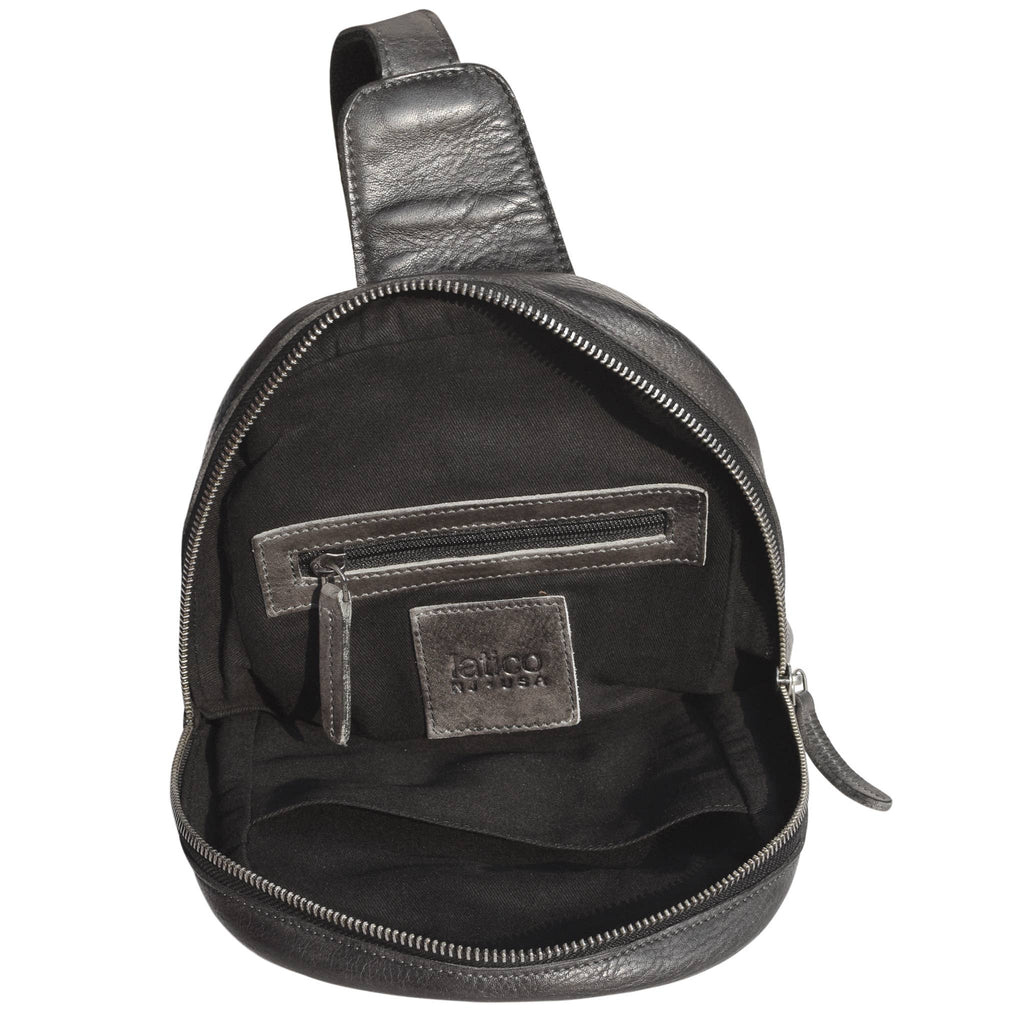 • 100% Leather, Handcrafted by artisans in South America and India • 2 zippered compartments • 2 interior pockets: one zippered, one open • Adjustable shoulder strap -- can be worn over the shoulder or as a cross-body bag • Fabric lining • Dimensions: 11.5"H x 2.5"D x 7.5"L