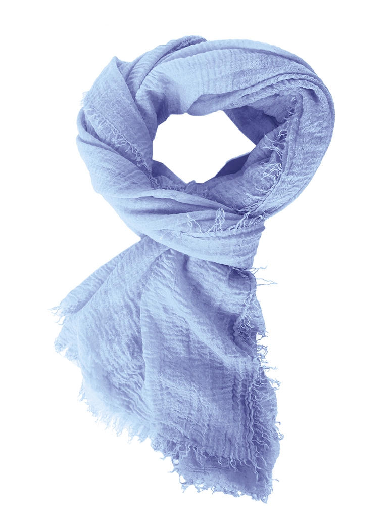 Delicately woven cotton & viscose shawl. Hand dyed by our weaving collective in Thailand. This gauze beauty has a naturally fringed eyelash edge. 72” x 39”