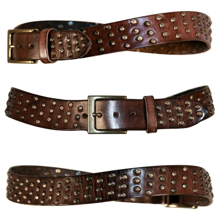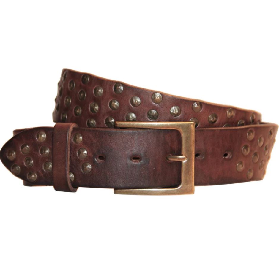 Want the comfort of Embrazio's patented curve AND some bling? Try their fully-riveted Coperto curved leather belt. Miguel and his team in Leon, MX built this belt from the bottom up using premium belt leather and a full serving of distressed rivets. Finish it off with an interchangeable Embrazio designed buckle and you've got a great feeling belt that also makes a bold and stylish statement.