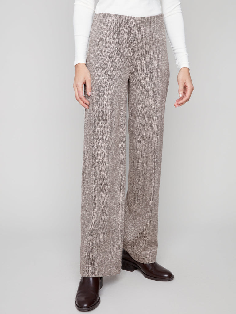Experience effortless comfort and style with the Mocha Herringbone Pull-On Pants. Designed with a wide-leg silhouette and a subtle herringbone pattern, these pants offer a flattering fit that moves with you throughout the day. The easy pull-on design ensures quick dressing, while the soft fabric keeps you comfortable from morning to evening. Perfect for both casual and polished looks, these pants provide versatility without sacrificing comfort.