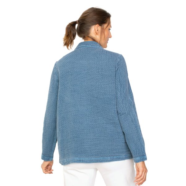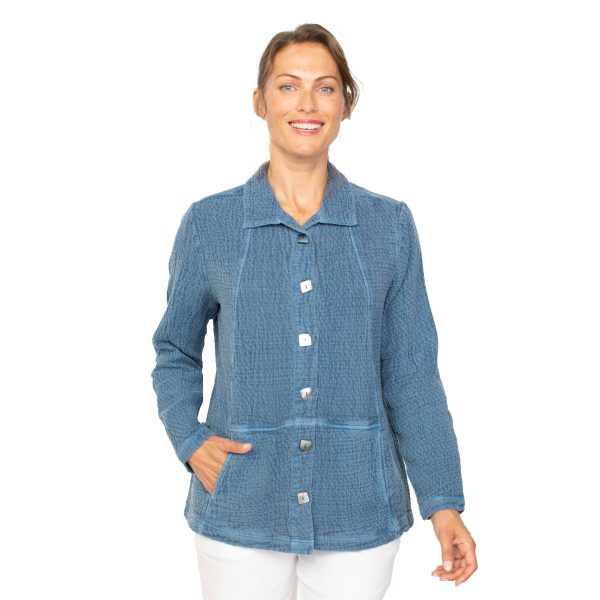 This timeless jacket exudes effortless charm and a relaxed feel. Made from all-cotton fabric, its sun-washed texture evokes memories of carefree summer days by the shore. Featuring two diagonal pockets and elegant princess seams that lead to a refined button front, the jacquard fabric adds dimension and volume to the design. Its sleeves are comfortably long and the soft A-line hem falls gracefully at the hips.