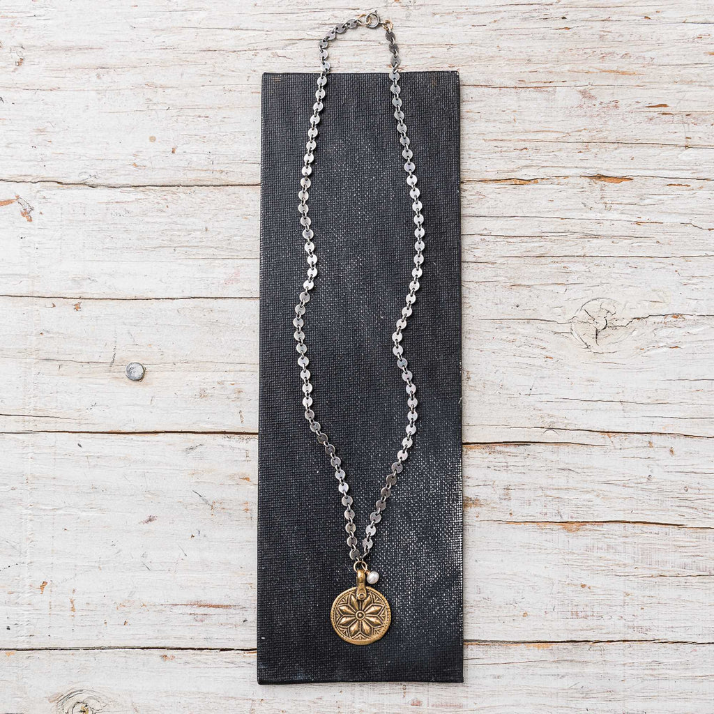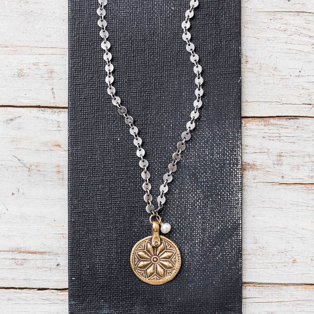 Original Hardware Sterling and Yellow Bronze True North Necklace on Disc Chain with Pearl