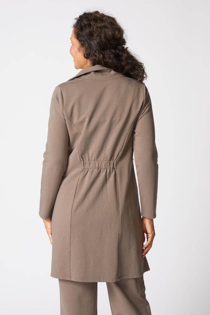 The Habitat Car Coat, made from soft French Terry, blends classic design with a comfortable, relaxed fit ideal for daily layering. Its breathable cotton-spandex mix delivers balanced stretch and shape, making it reliable for changing seasons. In the warm Truffle shade, this adaptable coat complements jeans, leggings, or pants, creating a refined yet casual outfit.