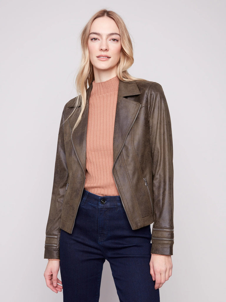 Elevate your wardrobe with the Vintage Faux Leather Jacket in a deep spruce green. Featuring elegant zipper accents and a lapel collar, this jacket blends timeless design with contemporary flair. Perfect for layering, it seamlessly enhances your favorite ensembles with a fresh, stylish edge.