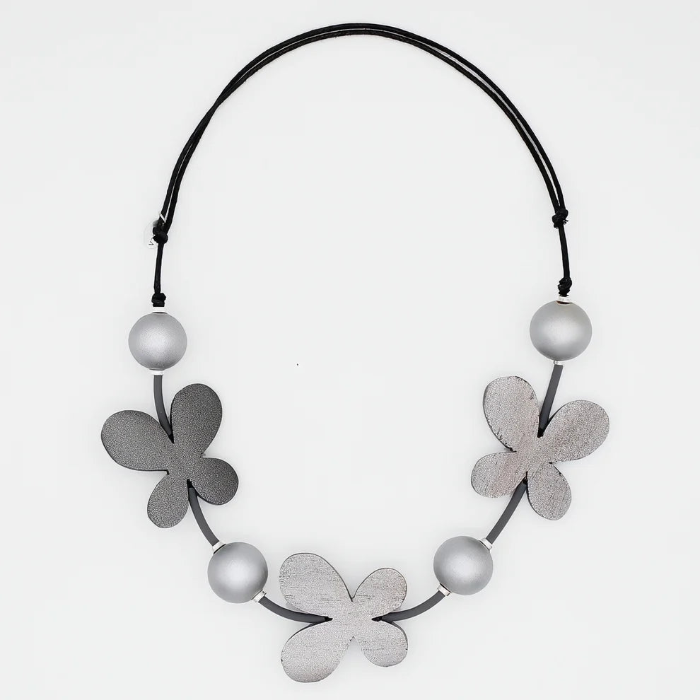 Indulge in the peaceful magnificence of nature with the Woodland Whisper Necklace, a striking accessory that exudes natural grace. Showcasing polished wooden beads and intricate butterfly designs, this necklace embodies the serene ambiance of a forest. Suspended on a flexible black wax cord, you have the freedom to adjust the length to your liking. Style solo or pair with complementary earrings.