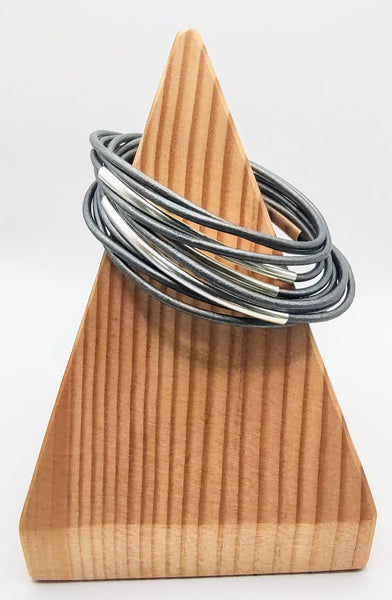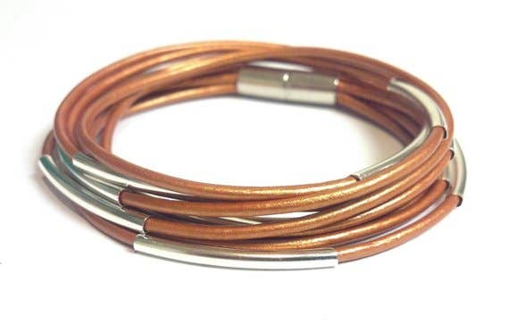 Rebel Designs Accessories Rebel Genuine Italian Vintage Leather, Antique Brass Finish Narrow Metal Wave Leather Bracelet $79.95