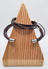 A double wrap bracelet and can also be used as a single necklace. It is 100% real leather bracelet made with 2 mm cord and silver plated tubes. It has a total of five leather cords that are wrapped around the wrist twice, allowing for a ten cord multilayered effect. It is made to fit the average wrist size of approximately 6 1/2 to 7 inches.