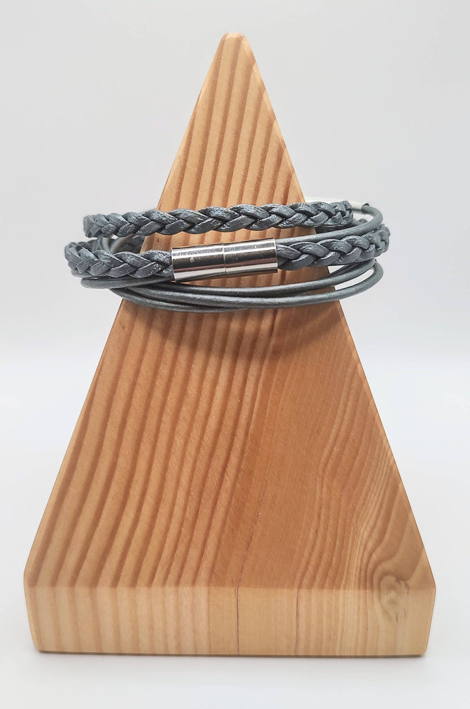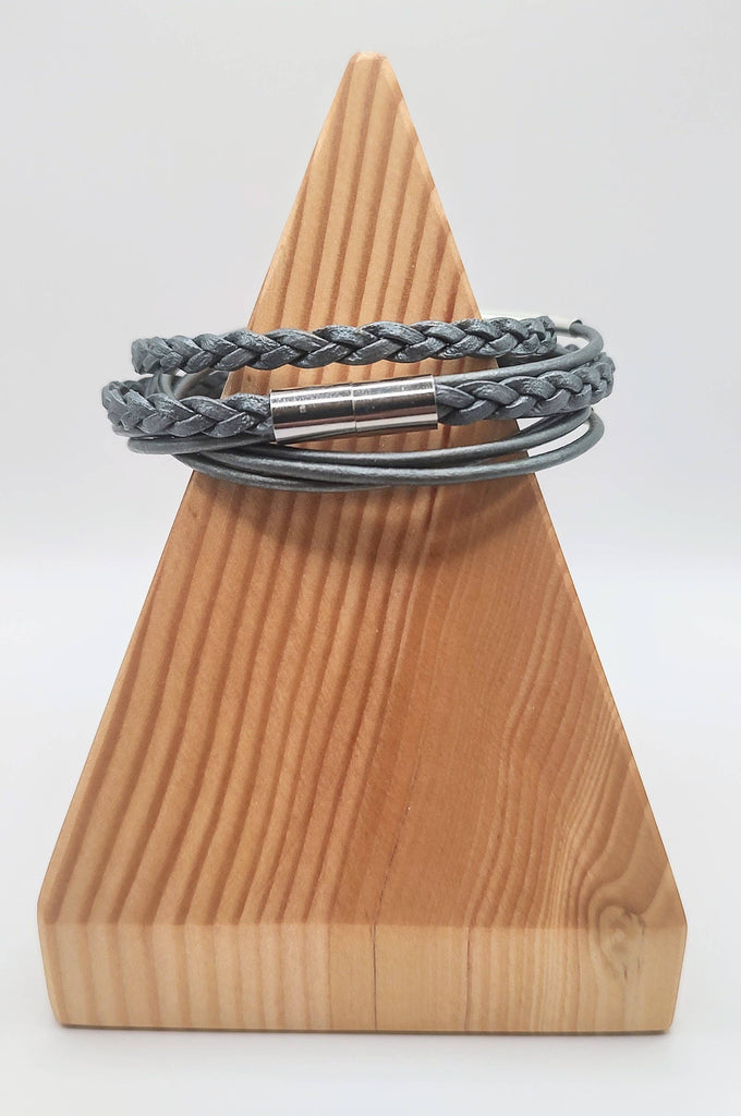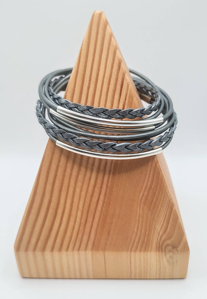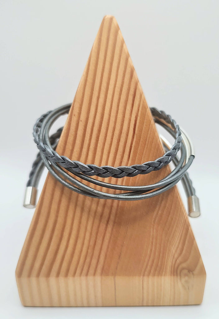 Metallic Silver Braided Leather Wrap Bracelet