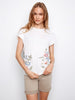 Delicate floral embroidery adorns this charming cotton top, featuring graceful cap sleeves that frame the shoulders beautifully. Crafted from soft, breathable cotton, it's perfect for layering or wearing solo during warmer months. The intricate embroidered details add a touch of feminine elegance to your everyday wardrobe, making it an effortless choice for casual outings or relaxed gatherings with friends.