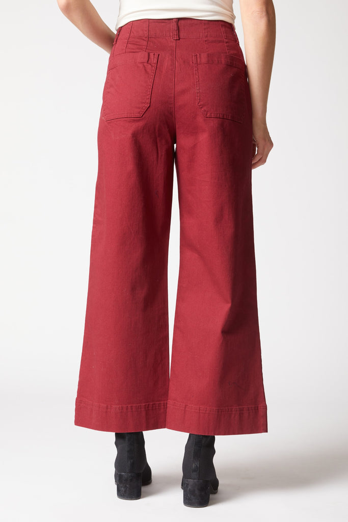 Stretch Denim Wide Leg Ankle Jean - Wine
