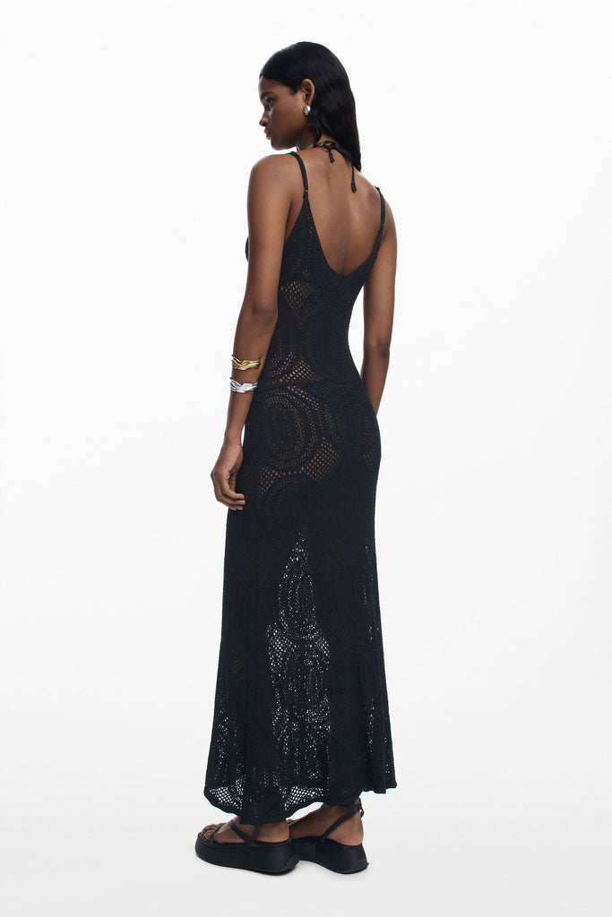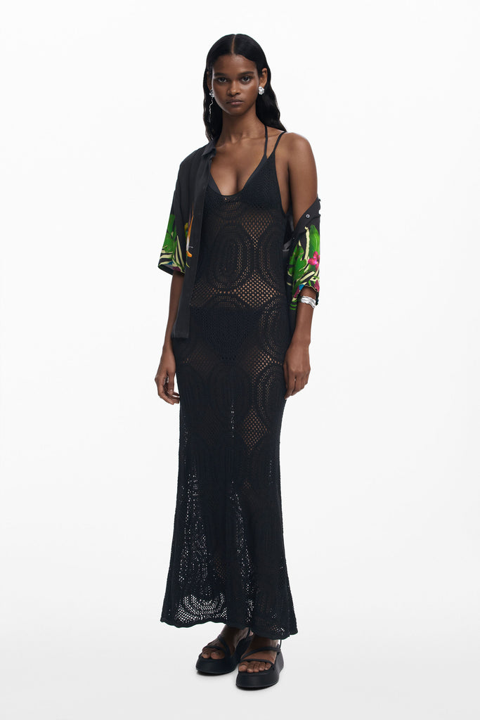 Experience the elegance of the Mina Mesh Dress with its delicate crochet details, comfortable straps, and classic round neckline. Medium fits like a small in all desigual