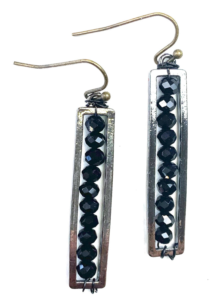 Lost and Found Trading Co. Jet Beaded Rectangle Frame Dangle Earrings