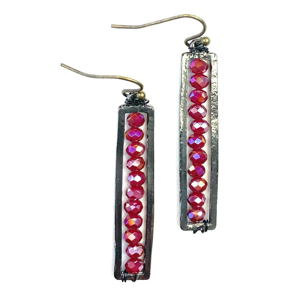 Lost and Found Trading Co. Scarlet Beaded Rectangle Framed Dangle Earrings
