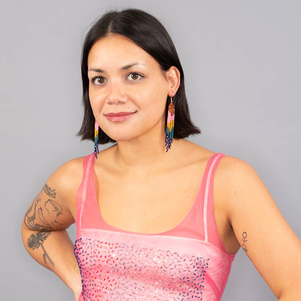 The Strata Fringe Earrings are handmade in a fair trade workshop in Guatemala.