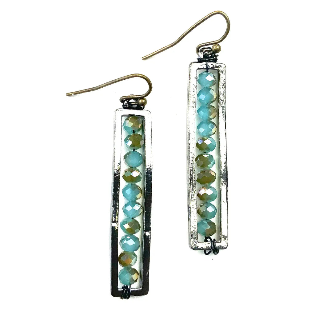 Lost and Found Trading Co. Turquoise Beaded Rectangle Bar Dangle Earrings