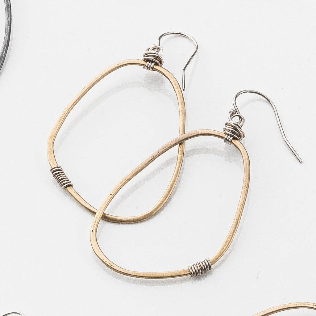 Modern and light with a mixed metal edge, the mid-sized version of our freeform earring. Approximately 1 ¾" long.