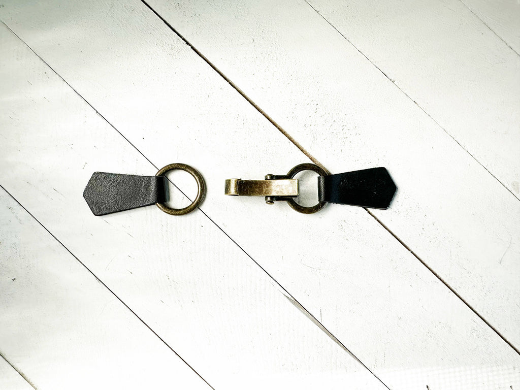 Antiqued bronze buckle hardware with easy open/close black leather tabs on either side with grip clips hidden on back. KardiKlips are like having a mini-tailor at your fingertips, providing a quick & easy way to tailor an outfit to your unique and individual shape. These small adjustments can make a big difference by hiding bulges, highlighting curves, or simply providing a secure way to fasten any garment! 4.5 inches long X 1.25 inch wide. A great alternative to a traditional belt, KardiKlips™ are Ideal for: Dresses Cardigans Sweaters Kimonos Jackets Tunics Cloaks Etc.. Each Klip features our new & improved grip clips, designed with a wide mouth to hold thick fabrics securely and open easily. Now includes a pair of removable silicone sleeves to protect more delicate fabrics Popular items for gift shops, renaissance fairs, clothing boutiques, plus-sized and capsule wardrobes. Packaged on a display card, sealed in a clear plastic bag. ©2020 Ashley Grove. All Rights Reserved.