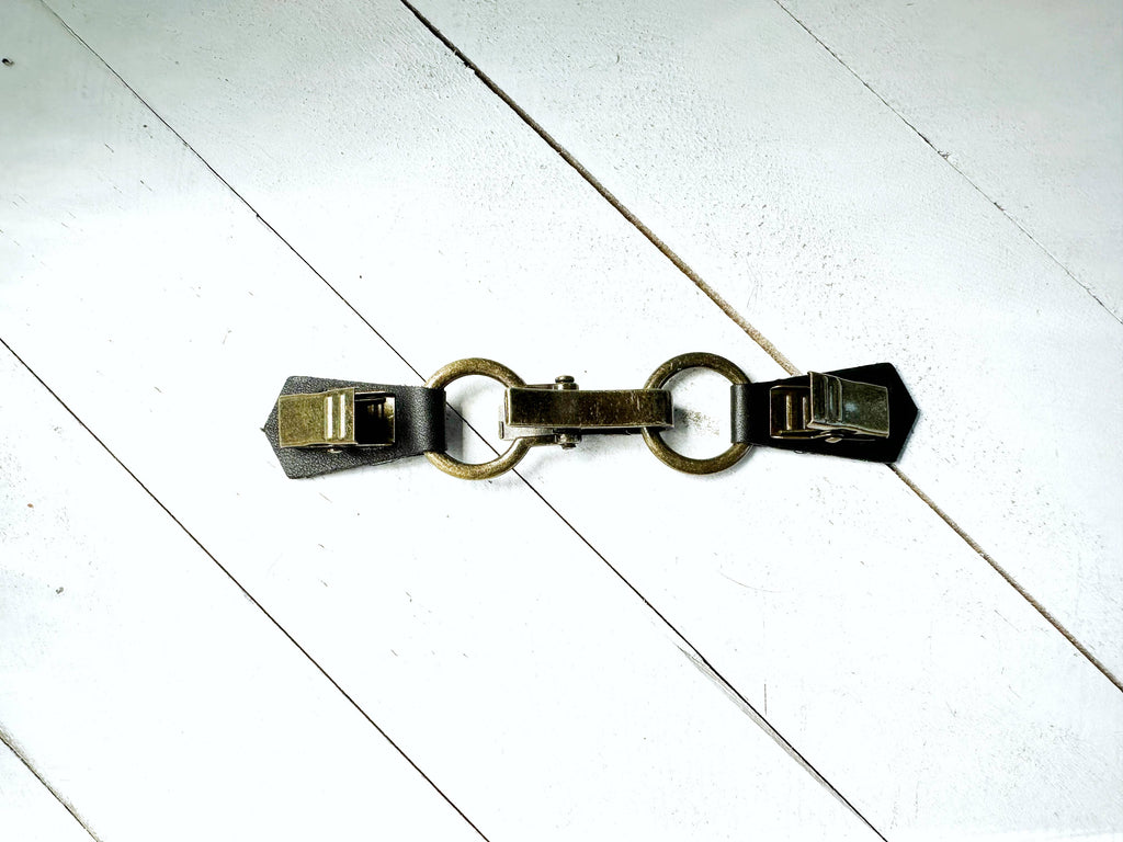 Bronze Buckle & Black Leather Cinch Clip for Dress, Cardigan