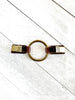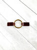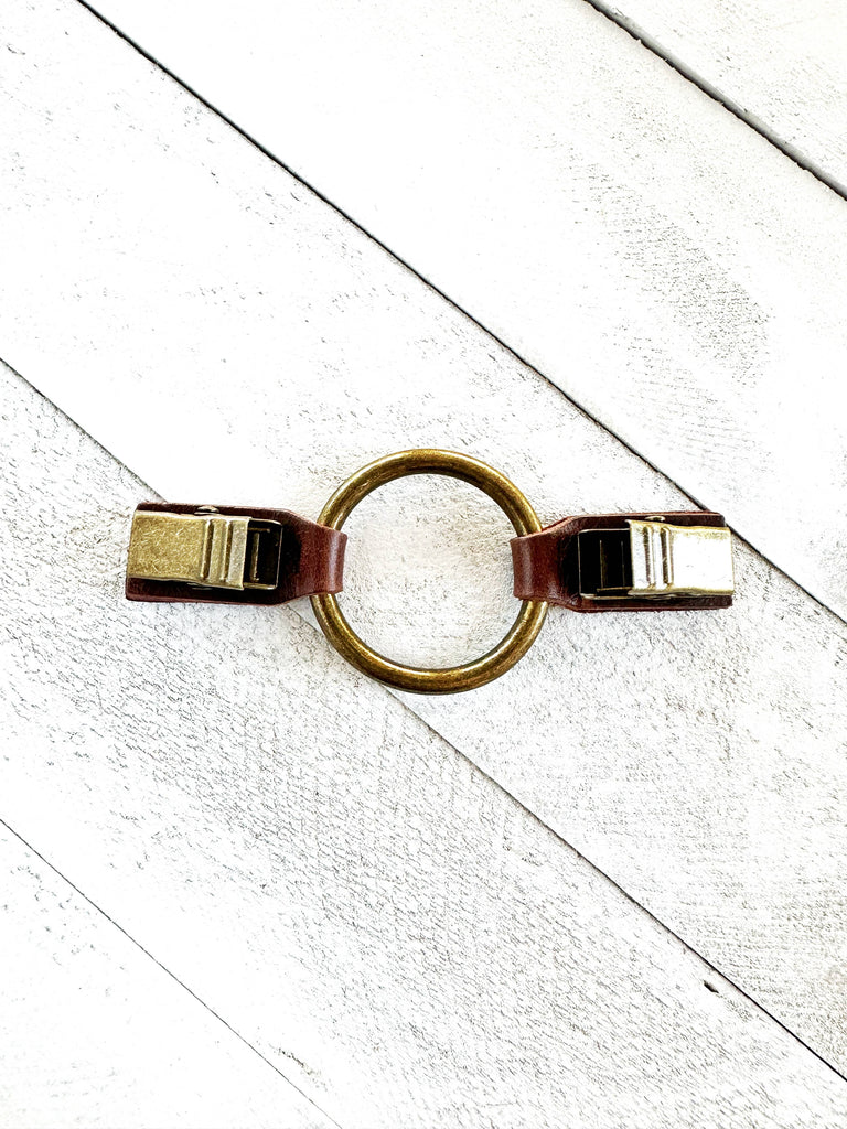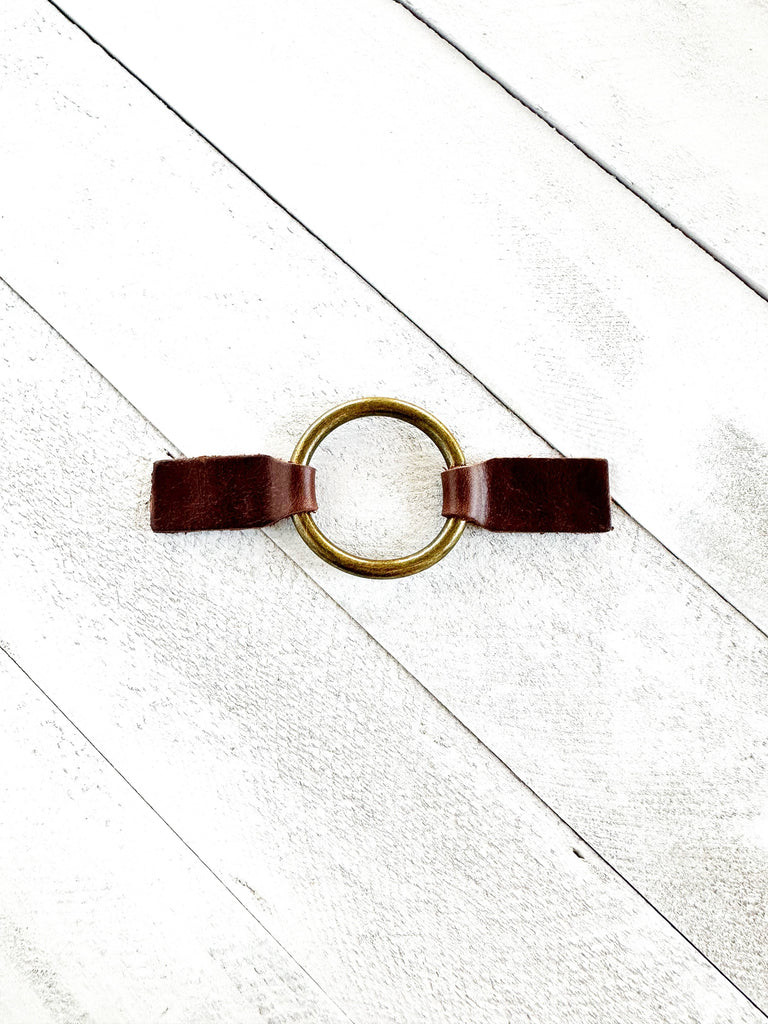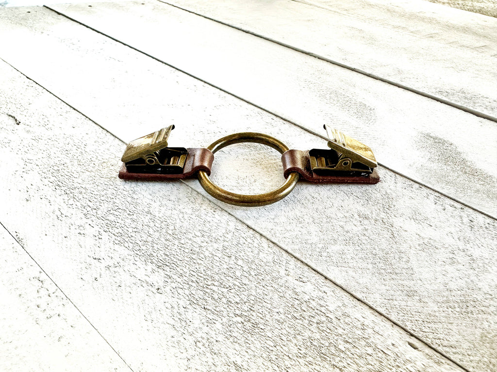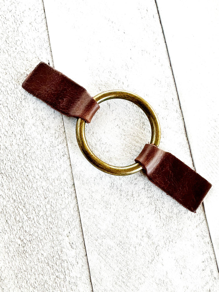 Single Bronze Ring with Genuine Dark Brown Leather Tabs on either side w/ grip clips.