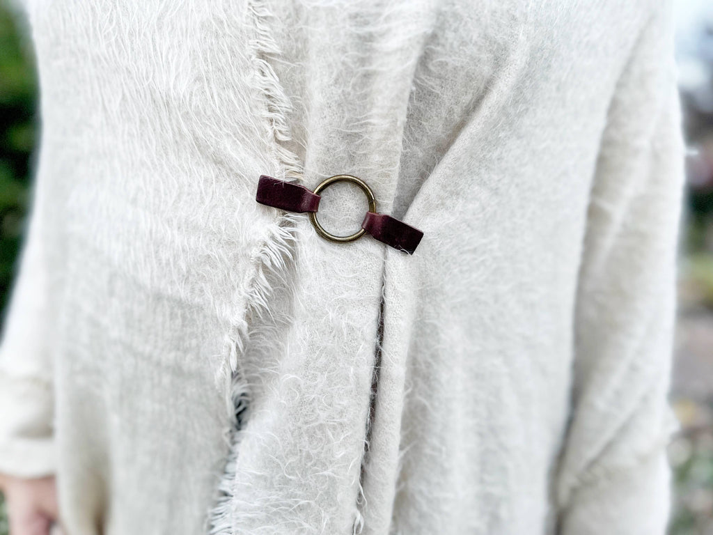 Cinch Clip for Clothes Bronze w/ Brown Leather Scarf Clasp