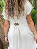 Interlocking Bronze Metal Leaf Hardware on Warm Brown Leather. Earthy & Otherworldly, Practical yet Whimsical. KardiKlips are like having a mini-tailor at your fingertips, providing a quick & easy way to tailor your outfit to your unique and individual shape. These small adjustments can make a big difference by hiding bulges, highlighting curves, or simply providing a secure way to fasten any garment. Ideal for: Dresses Cardigans Sweaters Kaftans Kimonos Jackets Tunics Cloaks Capes Belt Alternative 3 inches long X 1.25 inches wide. Each Klip features our new & improved grip clips, designed with a wide mouth to hold thick fabrics securely and open easily. We now also include a pair of protective inserts for more delicate fabrics. Popular items for gift shops, renaissance fairs, clothing boutiques, plus-sized and capsule wardrobes. Packaged on a display card, sealed in a clear plastic bag. ©2020 Ashley Grove. All Rights Reserved.