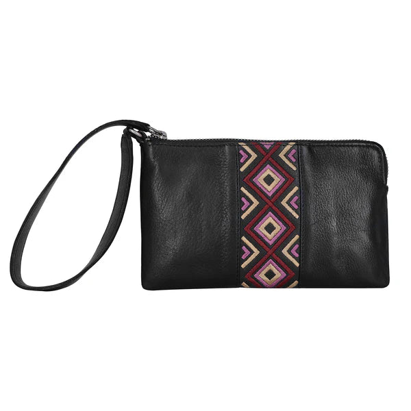 Crafted from premium full-grain leather in small batches by skilled artisans across South America and India, this wristlet celebrates authentic craftsmanship over mass production. The signature diamond-textured exterior and sturdy ¾" wrist strap create an instantly recognizable silhouette, while antiqued silver hardware adds timeless appeal. Measuring 4.5" H x 8" L x .5" D and weighing just half a pound, it's compact yet surprisingly functional with an interior zip pocket and four card slots. Natural variations in the leather's grain and color make each piece one-of-a-kind, and the material develops a beautiful patina over time, becoming more distinctive with every use.
