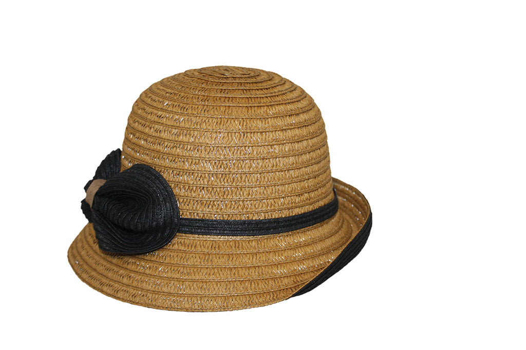 Women's Hat- 100% Paper Braid, 2.5" Bucket Brim, Ivory top black under brim.