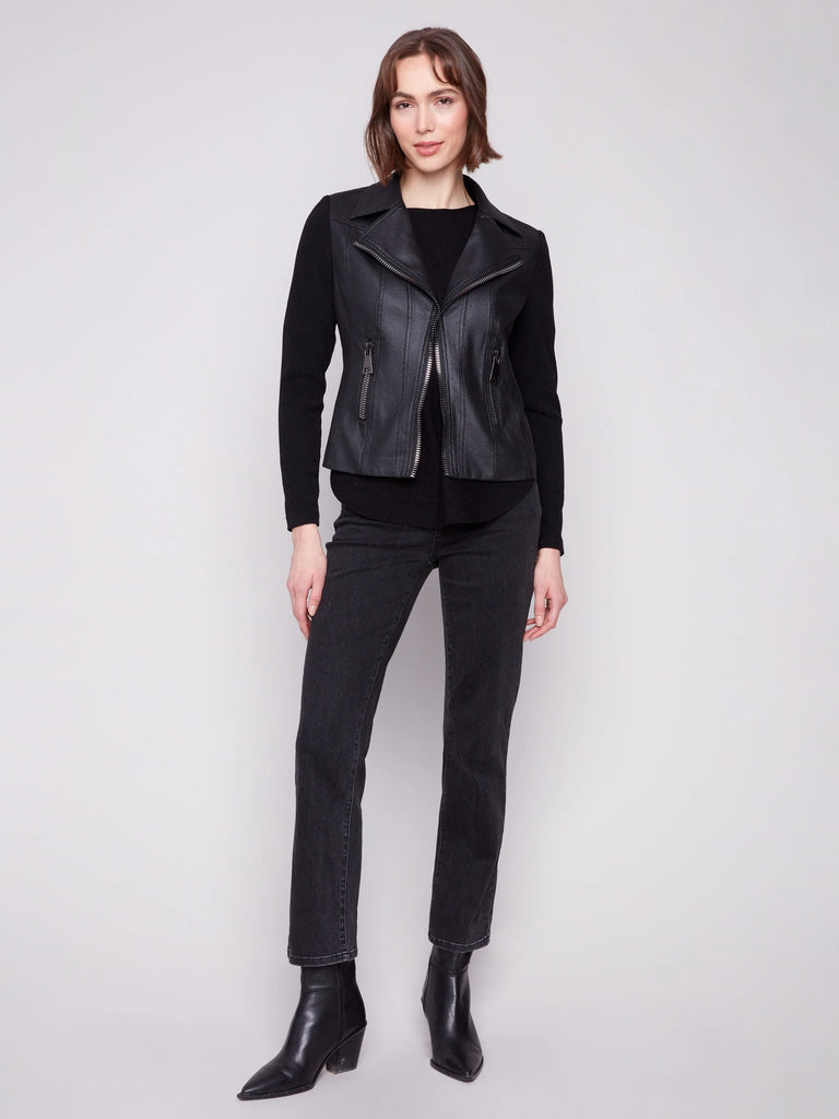 A vintage-inspired faux leather jacket brings a fresh twist to your fall wardrobe. With a classic lapel notch collar and zipper details, it adds edgy elegance to any outfit. Whether you're heading out for a casual day or a night on the town, this jacket offers both a sophisticated look and a comfortable fit.