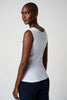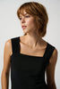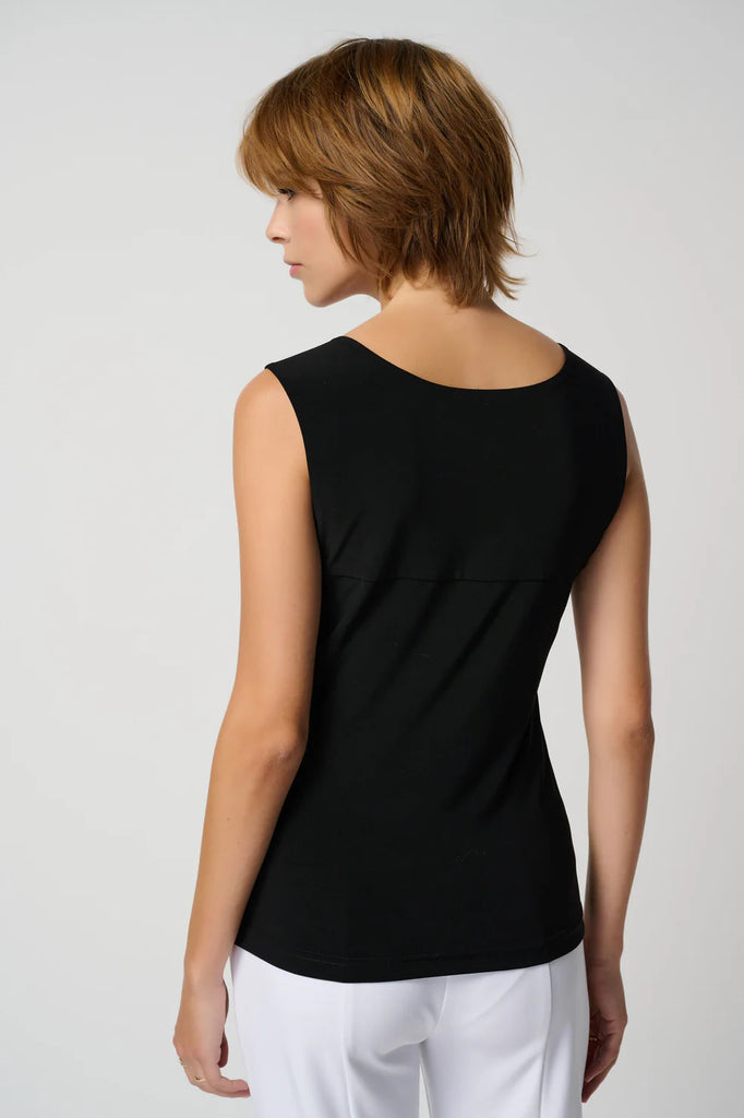 Experience the elegant charm of this Joseph Ribkoff camisole, designed with a smooth, silky fabric. Its standout feature is the chain link trim that beautifully frames the square neckline, adding a subtle sparkle to your look. The sleeveless design and relaxed fit make it an ideal choice for warm days or stylish evening outings, combining comfort with refined style.