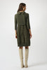 - Stand collar. Three-quarter sleeves. Front pockets. Back button opening. Unlined.