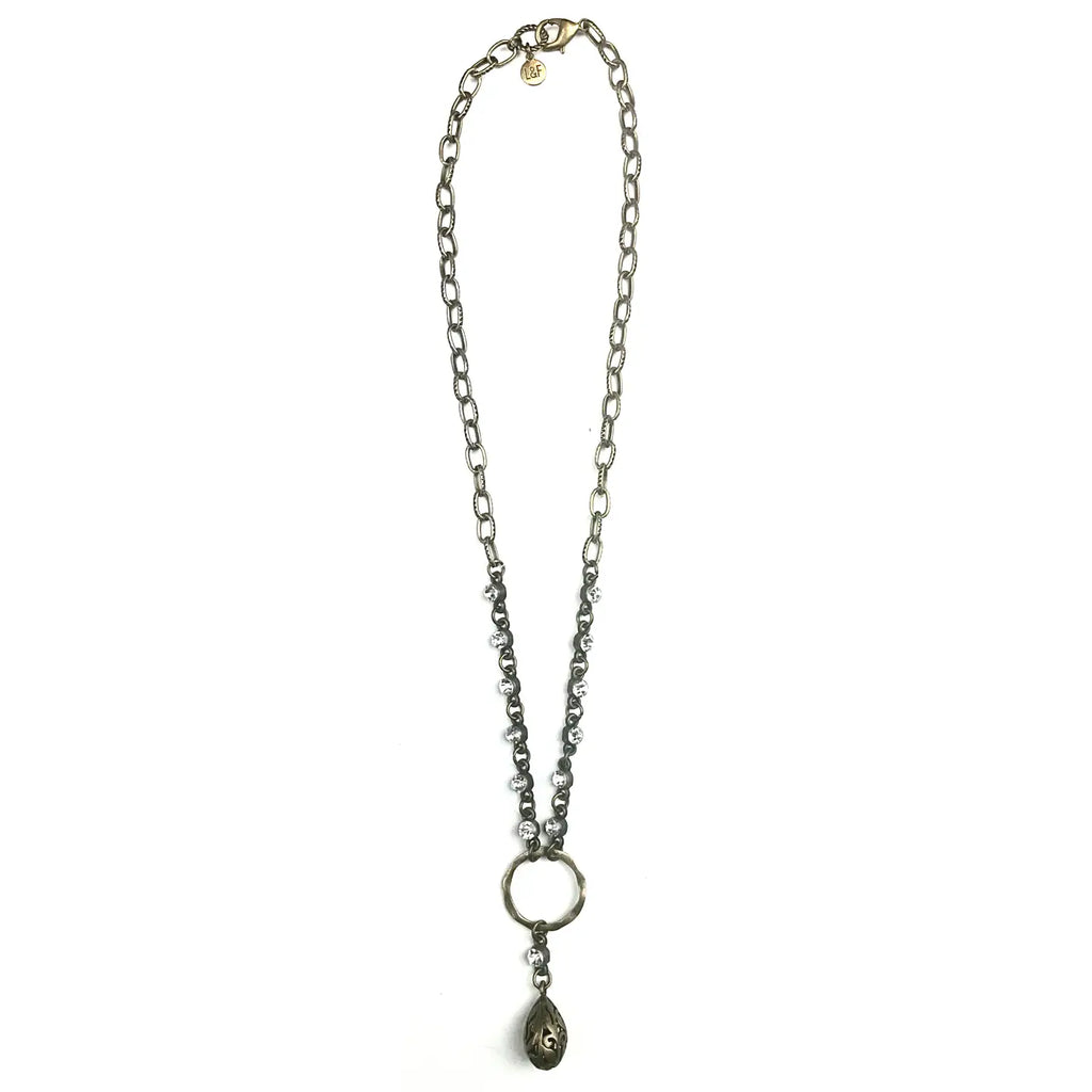 Lost and Found Trading Co. Crystal Chain Link with Filigree Tear Drop Necklace