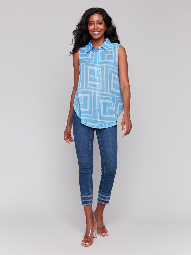 Elevate your spring and summer wardrobe with our cotton tie top in a stylish bluebell print. Made from lightweight, breathable cotton, this shirt provides all-day comfort and coolness. Its versatile button-down design and optional front tie knot make it suitable for any setting, whether it's a casual coffee date or a relaxed day in the office.