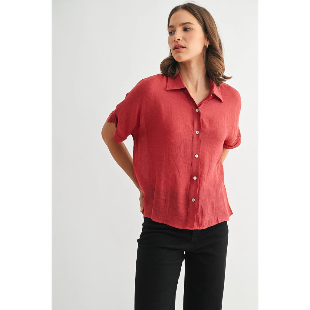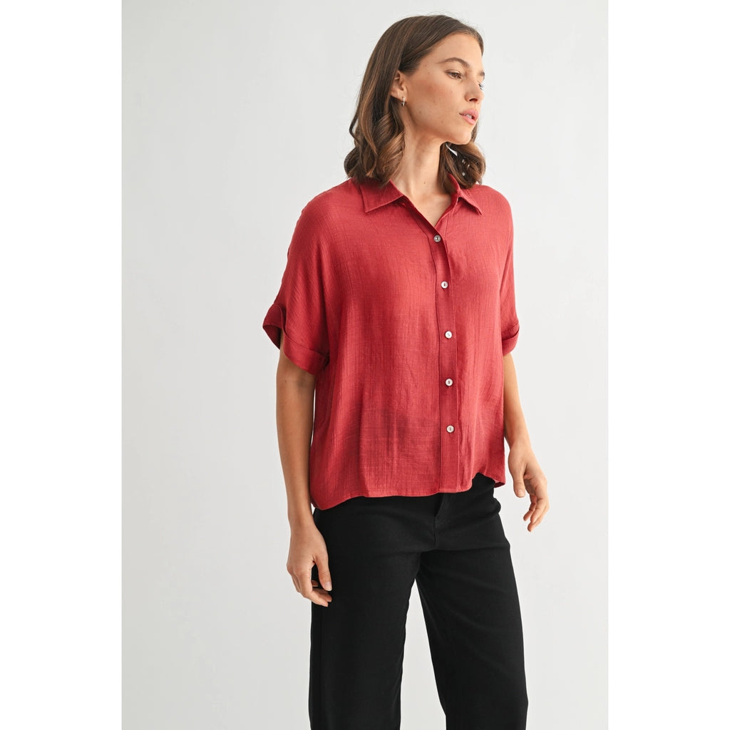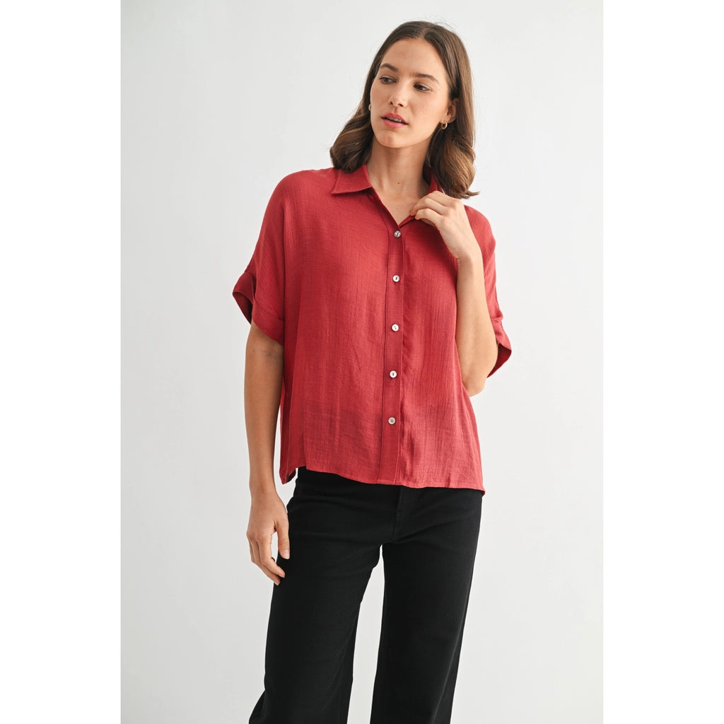 Enhance your daily wardrobe with the Brick Short Sleeve Collared Shirt from Fun2Fun. Featuring a button-down front, this shirt puts a fresh twist on a classic shape. Its short sleeves and relaxed boxy cut bring a stylish edge to any look. Created in LA, Fun2Fun focuses on combining trendy designs with superior quality. Wearing this shirt means embracing a lasting style that celebrates the modern woman’s everyday confidence.