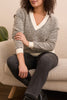 Elevate your everyday look with this thoughtfully designed knit top that balances comfort and sophistication. The unique two-tone textured yarn creates visual interest while remaining beautifully wearable, and the long sleeves with relaxed drop shoulders offer an effortless, flattering fit. Ribbed accents frame the V-neckline, cuffs, and hem with a polished touch that takes this piece from casual to refined. Lightweight yet cozy, it's the perfect layering piece or standalone statement that works seamlessly across seasons.
