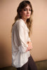 This recycled hammered satin tunic features a boxy silhouette with three-quarter dolman sleeves and a graceful cowl neckline, offering a comfortable and chic look. The center back button detail, while purely decorative, enhances the elegant design of this unlined garment.
