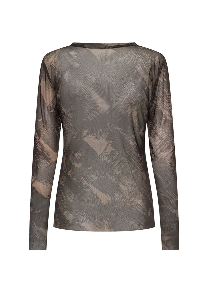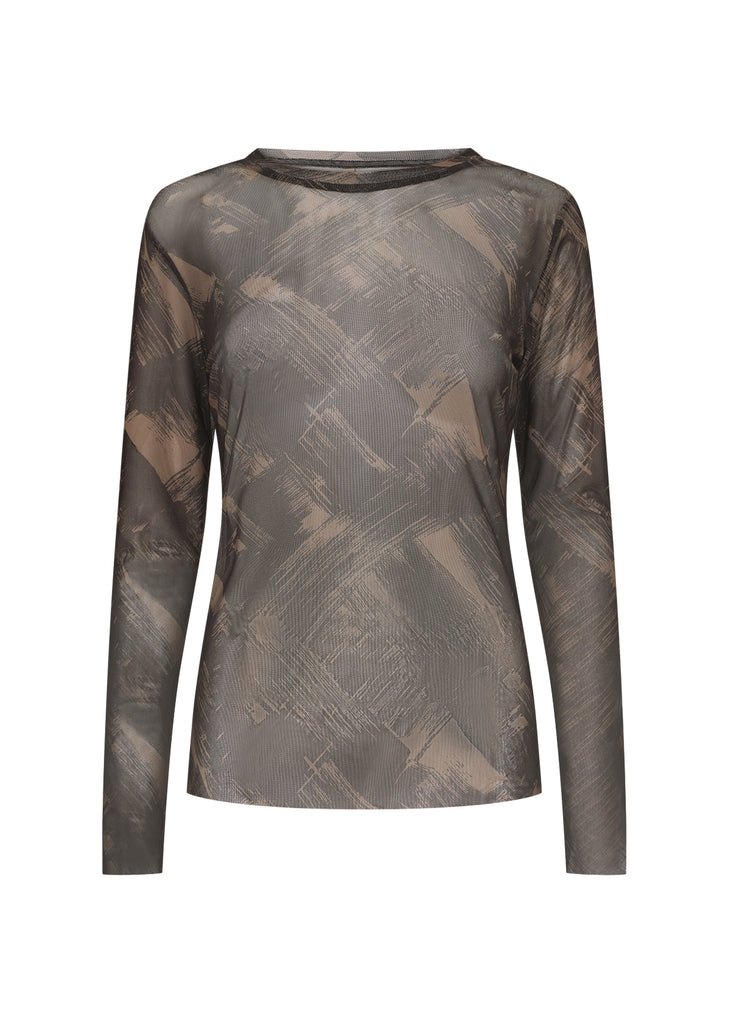 Our Mesh Long Sleeve Top is crafted from a soft blend of recycled polyester and elastane, making it the perfect casual addition to your wardrobe. Boasting a round neckline, form-fitting design, and stylish mesh details, this top also features a unique print that adds a touch of cool to any outfit. For a chic look, pair it with loose trousers and loafers.
