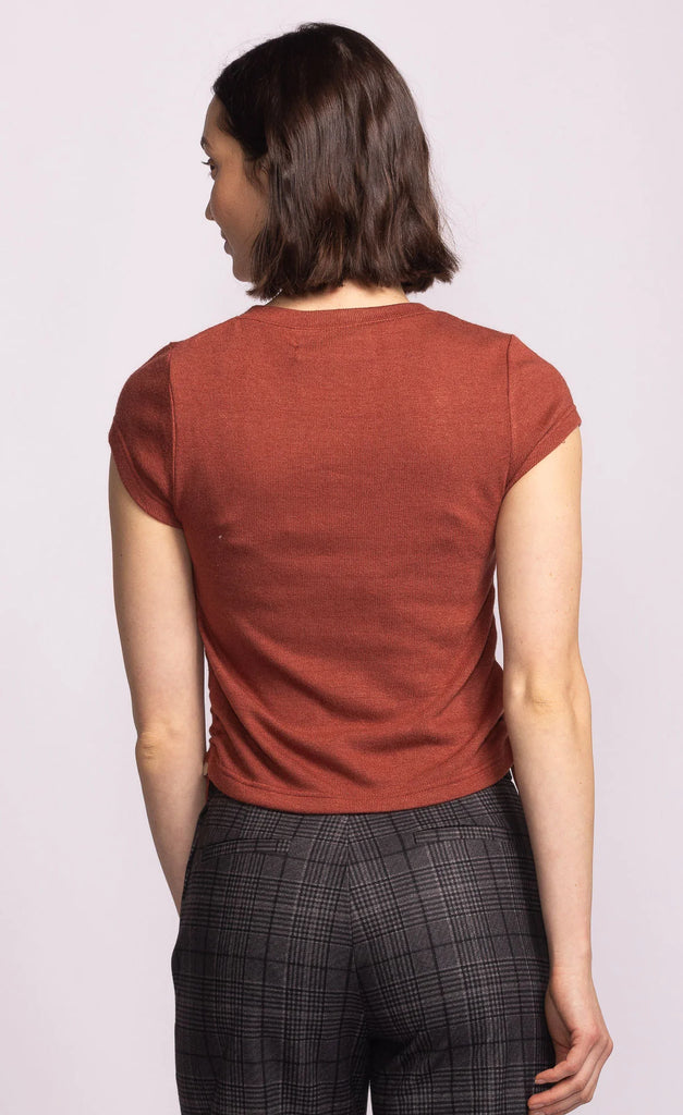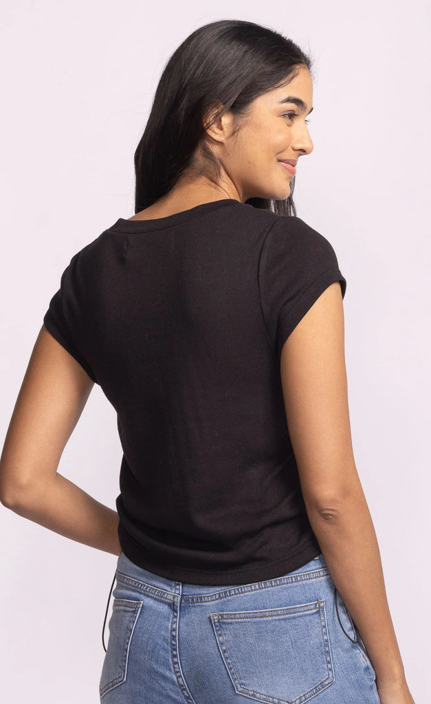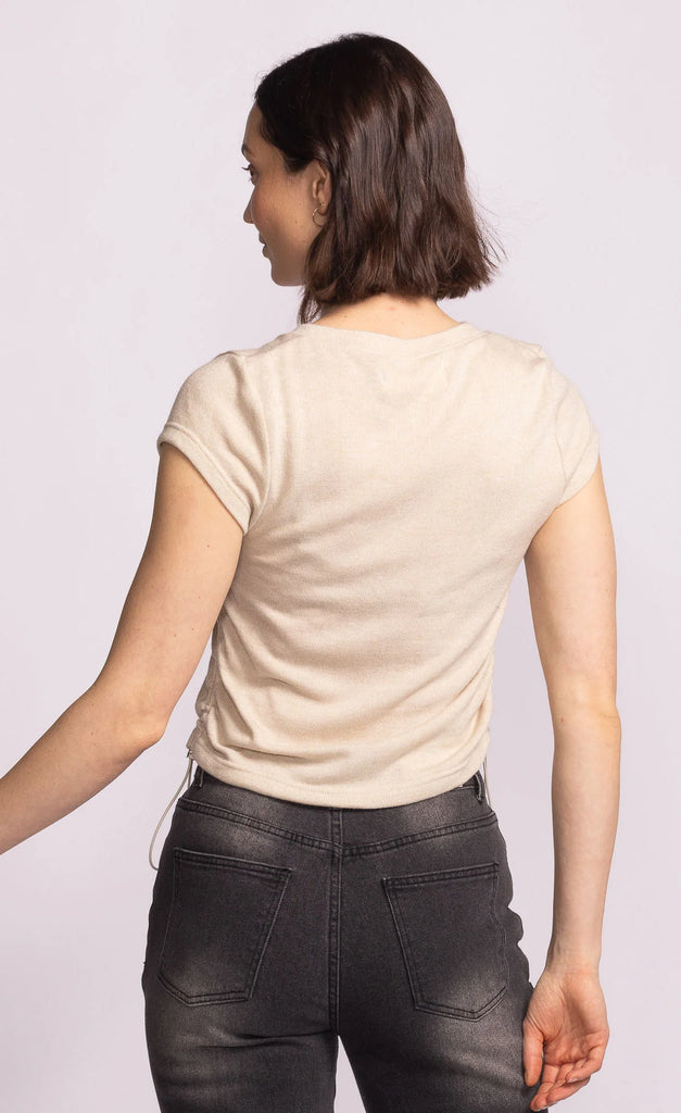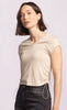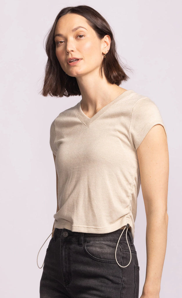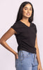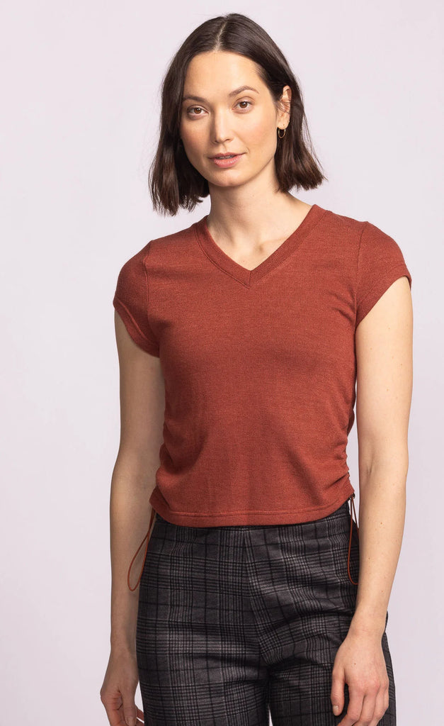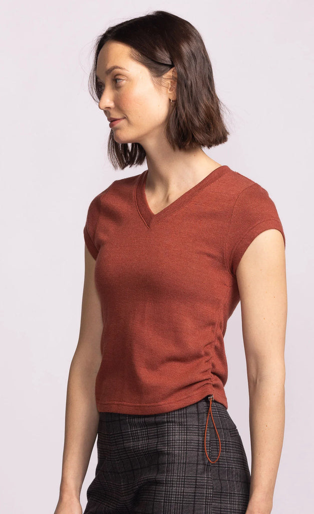 The Vista Top elevates your basic tee with a soft viscose blend and flattering details. It includes a V-neck, cap sleeves, and drawcord sides that can be adjusted to create a stylish ruched look. Ideal for comfortable days when you want a polished appearance, this versatile top pairs easily with jeans, skirts, or tailored trousers.