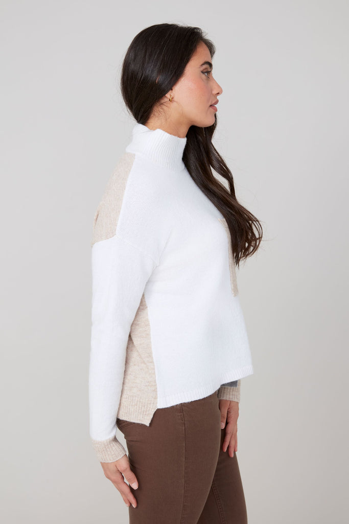 Color Block Pocket Mock Neck Sweater