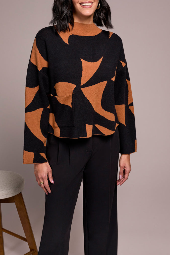 Elevate your casual wardrobe with this oversized mock neck sweater, where contemporary style meets everyday comfort. The eye-catching abstract print brings personality and visual interest to your look, while the relaxed silhouette lets you move freely throughout your day. A functional front pocket keeps essentials within reach, and the long sleeves with mock neckline deliver the warmth and coverage you need for cooler seasons.