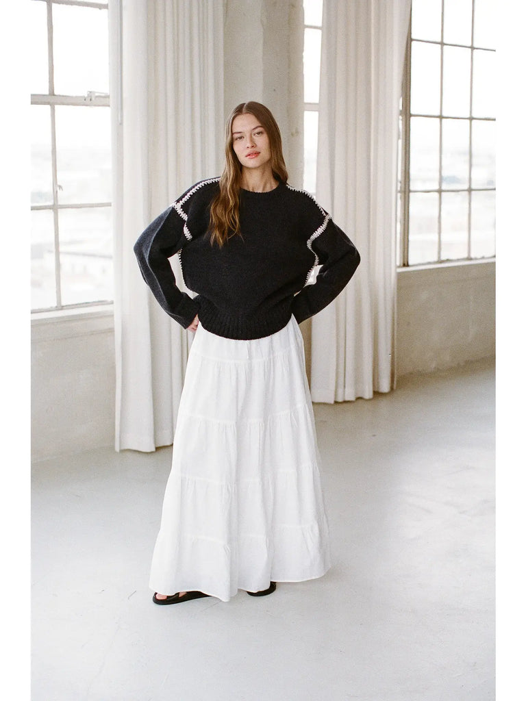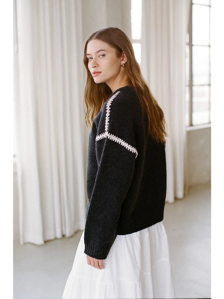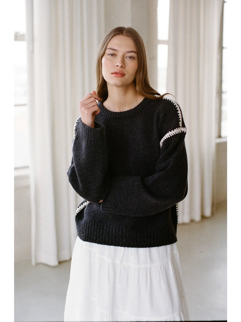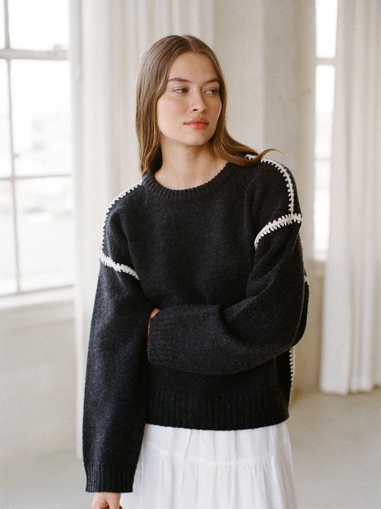 Shoulder Stitch Slouchy Crew Neck Sweater