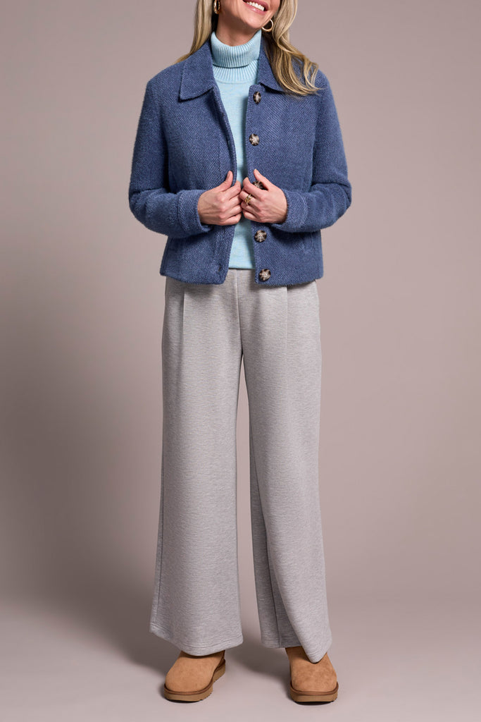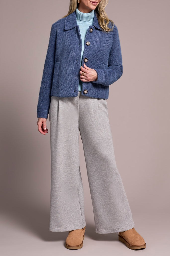 Add effortless polish to any outfit with this marine button-front jacket, a versatile layer that transitions seamlessly from season to season. The thoughtfully designed silhouette flatters your frame, while practical front welt pockets keep your essentials within reach. Constructed from luxuriously soft boucle fabric, it feels wonderful against your skin and moves with you throughout your day. The full lining provides extra warmth and structure, making this jacket a reliable go-to piece that works just as well over casual basics as it does with dressier pieces.