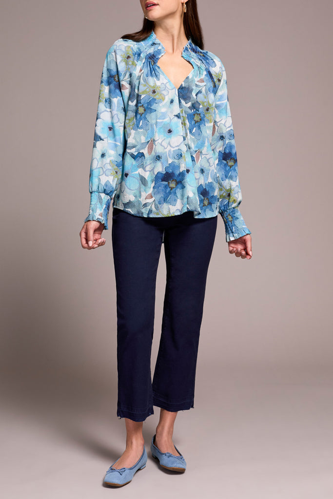Slate Blue Smocked Blouse