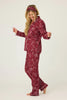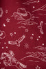 Relax and unwind in this comfortable three-piece flannel set featuring a Western-inspired design. Crafted from soft cotton in a classic twill weave, it includes a button-up shirt, relaxed-fit pants, and a coordinating headband. The deep burgundy fabric showcases desert-themed motifs—horseback riders, cowboy hats, horseshoes, soaring birds, stars, and mountain landscapes—evoking the peaceful feeling of falling asleep beneath wide open skies.
