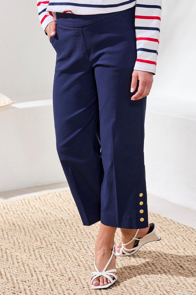 Slip into effortless comfort with these pull-on capris, crafted from soft, stretchy century twill that moves with you. The wide-leg silhouette and relaxed fit deliver a flattering, laid-back look perfect for warm days, getaways, or weekend lounging. Smooth, breathable fabric keeps you cool and comfortable from morning to night, making these a versatile go-to for any casual occasion.
