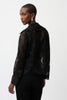 This striking moto jacket blends contemporary style with practical comfort through its geometric mesh construction. The sharp notch lapel collar and extended straight sleeves create a polished silhouette, while the asymmetric oblique zipper adds an unexpected design element that sets it apart. Lightweight enough for layering yet bold enough to make a statement, it's the perfect piece for anyone looking to elevate their everyday wardrobe with modern edge.