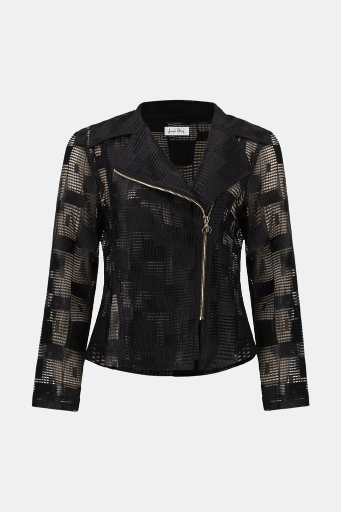 Geometric Mesh Moto Jacket With Asymmetric Zipper