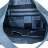 Oversized + streamlined 2”wide shoulder strap-8”drop Interior organization + keyring leash 2 Interior water bottle elastics Lays flat on the body. Dimensions: 13”H x 3.5”D x 19”L