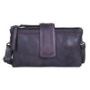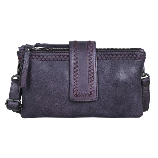100% Leather 5/8” wide adjustable/detachable cross body strap-32” max: 16” min drop Double top zip entry and center open compartment with hidden magnetic snap closure Exterior features handwoven tab with hidden magnetic snap closure Interior front features: 4 credit card slots and open slip pocket Interior back features: zip pocket Poly cotton lining Dimensions: 5.25"H x 1.5"D x 9.25"L
