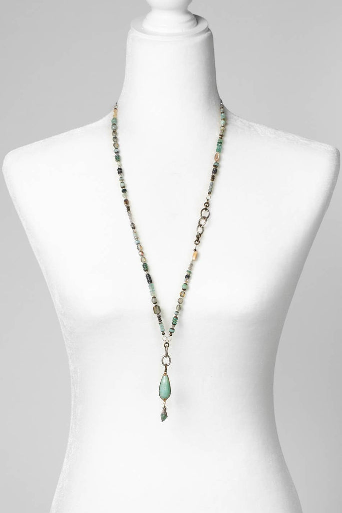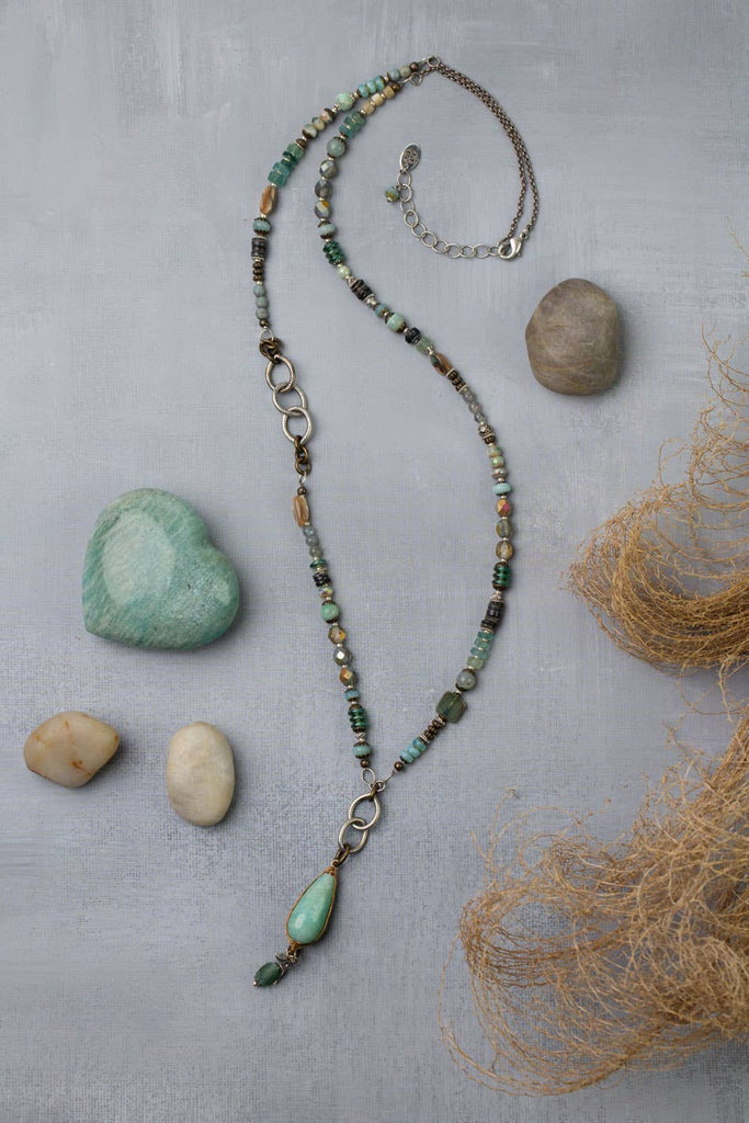 - 31-33", adjustable with antique silver plated brass lobster claw clasp